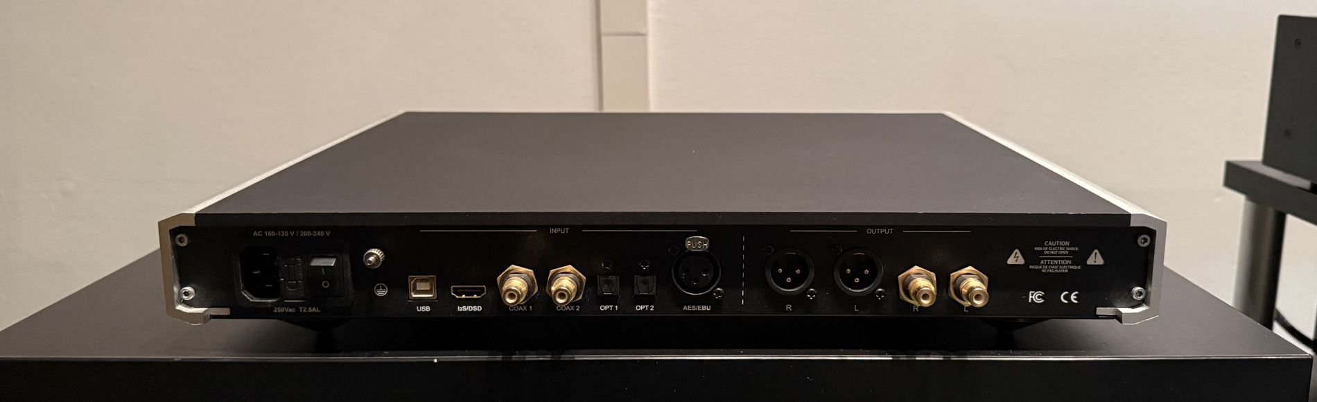 - 2 RCA unbalanced outputs: Fix mode 4Vrms or 2Vrms (user selectable). If set to variable output, the maximum output is 4Vrms.
