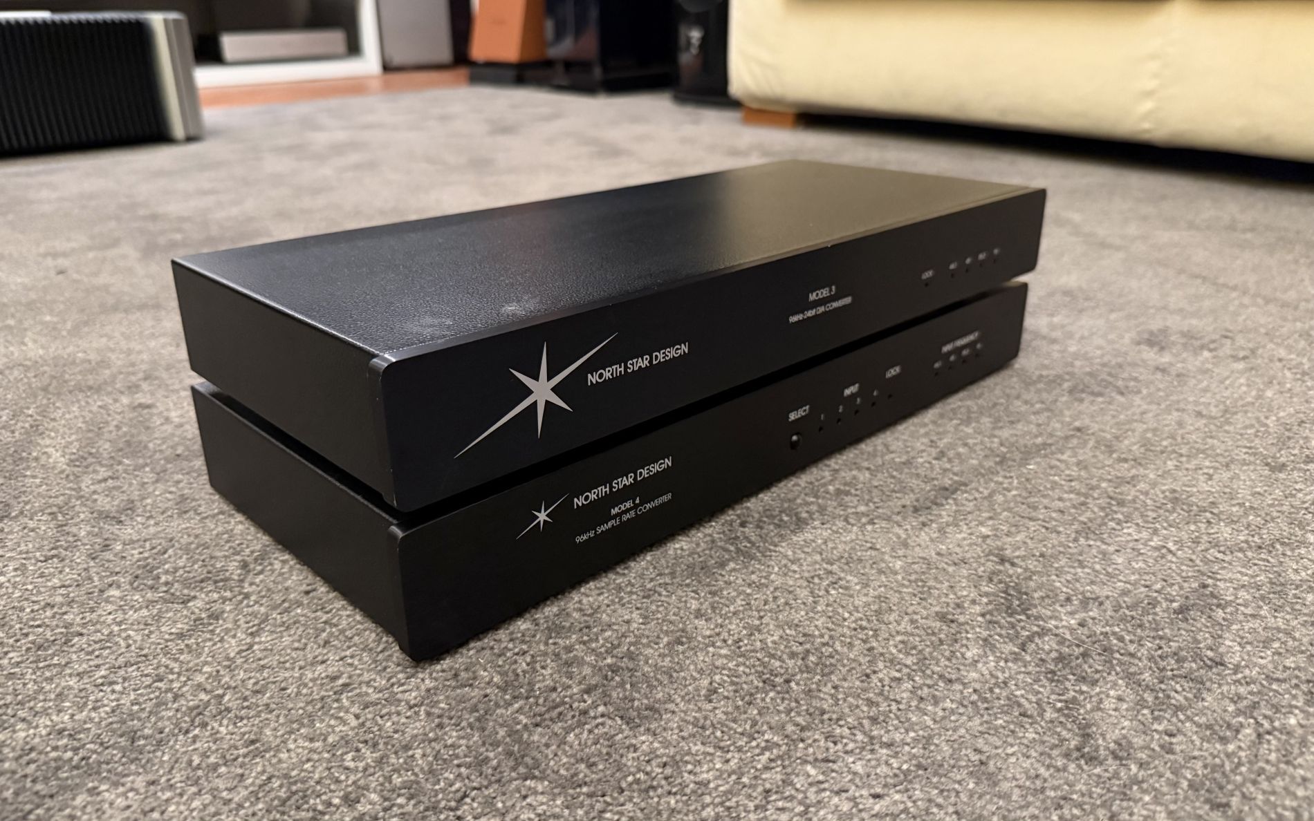 North Star Design Model 3 + Model 4 rappresenta un classico sistema di conversione digitale-analogico (DAC) ad alte prestazioni. Il Model 3 è un convertitore 24bit/96kHz a stato solido, noto per la sua velocità, dinamica e dettaglio, mentre il Model 4 agisce come un sofisticato upsampeler per ridurre il jitter.